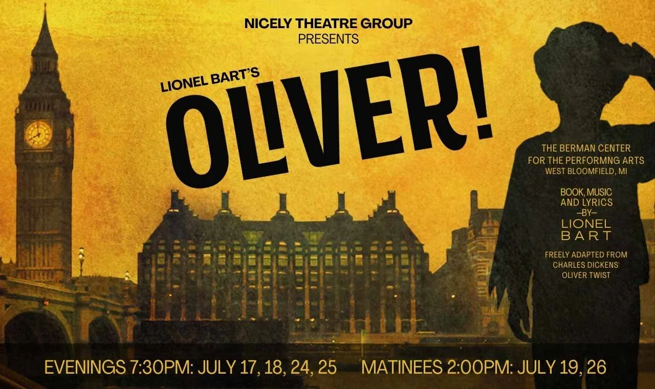 Nicely Theatre Group presents the Tony Award-winning musical masterpiece, Oliver! Set in 1830’s England, Oliver! tells the story of a mistreated orphan boy who escapes to London and finds acceptance amongst a group of petty thieves. Oliver! features classic ballads such as “As Long As He Needs Me” and “Where Is Love?”, and epic production numbers such as “Consider Yourself” and “Who Will Buy?”.